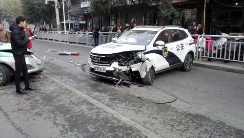 11月28日09時10分許,一輛出租車(豫ATF790)和一輛警車(豫A5316警)在淮南街政通路南側發生交通事故。出租車駕駛員郭某芹駕車沿淮南街由北向南行駛至淮南街政通路南20米處時,為超越一輛灑水車越過道路中線與對向正常行駛的警車發生事故,造成雙方駕駛員及出租車上兩名乘客不同程度受傷,傷者已經送往醫院救治。經交警部門現場勘察,出租車駕駛員郭某芹負事故全部責任,目前事故正在進一步處理當中。