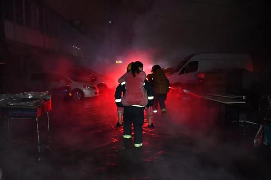 三點五十二分,救援力量到達現場,經了解,事故現場為室外熱力管道破裂,泄漏熱水導致周邊建筑物內有人員被困。三點五十七分,救援人員從泄漏點臨近成功營救4名被困人員,均未受傷。在救援力量擴大搜索面后,四點三十五分,從泄漏點附近一快遞住宿點內搜救出4名被困人員,經現場120確認其中3人死亡(男性)、1人受傷(男性)。