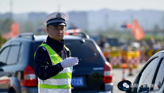 12月7日上午,伊濱交巡大隊三中隊民警在洛偃快速通道孝文大道口日常執勤。