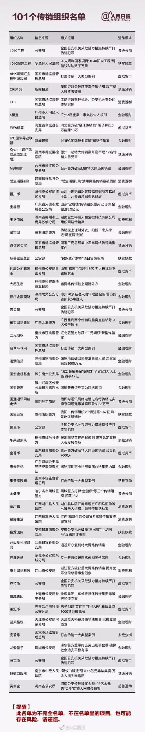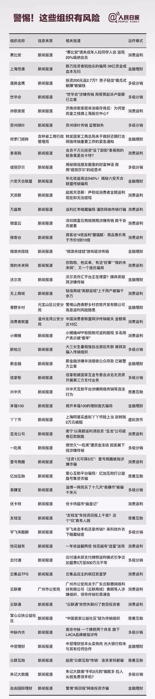 已查處的傳銷名單