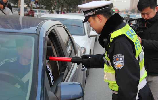 1月16日早上7點30分,鄭州交警九大隊楊檸副大隊長帶隊,在嵩山路長江路交叉口進行酒后駕駛嚴查專項行動。