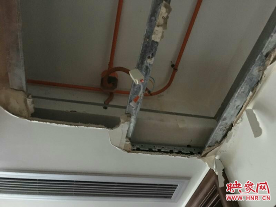 “當(dāng)時水順著天花板往下流,我們都是用盆接的水,接滿了倒掉,倒了再接。”周先生樓下的業(yè)主告訴記者。漏水后,在周先生的催促下,萬家興裝飾公司派工人來維修漏水,但是工人卻找不到漏水原因,甚至把臥室的地板都拆掉了幾塊,也沒有找到漏水點。后來,在小區(qū)物業(yè)水電工的指導(dǎo)下,萬家興裝飾公司才找到了漏水原因,原來他們工人裝修時候把鏈接排水管的一個地漏給封死了。萬家興裝飾把周先生家衛(wèi)生間地面和部分墻體進(jìn)行了拆除后做了維修。“由于樓下的天花板等損壞了,當(dāng)時,萬家興裝飾也答應(yīng)了負(fù)責(zé)維修,但是,現(xiàn)在卻不管不問了”周先生說。