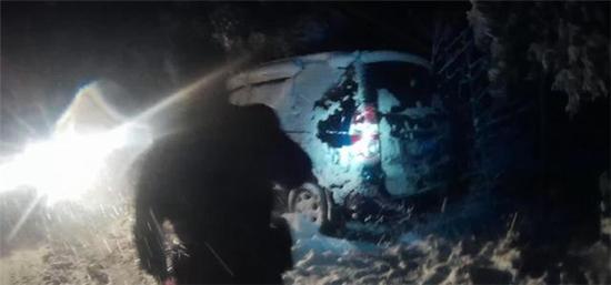 1月30日22時(shí)許,因雪中路面打滑,且看不清方向,一輛小型面包車走到唐河縣馬振撫鎮(zhèn)旅游公路擰車灣路段時(shí),滑入路邊30余厘米用來排水的溝里。由于大雪一直在持續(xù),氣溫較低,形勢危急。