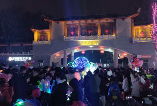 盡管沒(méi)有燈展,但公園內(nèi)依舊人頭攢動(dòng),擁擠場(chǎng)面不輸春運(yùn),不少游玩項(xiàng)目也排起了長(zhǎng)龍,就連去廁所也要等待許久。“早知道沒(méi)有燈展,我們就不來(lái)了,黑燈瞎火的,挨這份擠!”一對(duì)老夫婦滿臉失落地告訴記者。