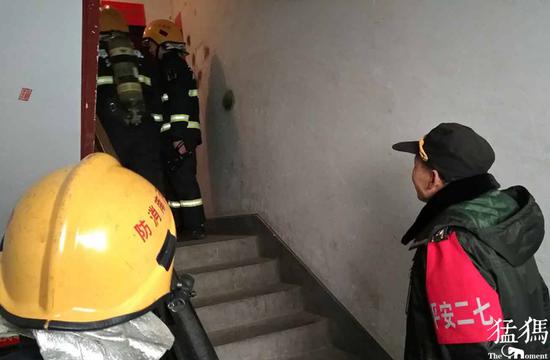 據隊員宗元稱,當時火勢很大,順著窗戶往上竄,因為該住戶家中沒人,房門打不開,大家一束手無策。巡防員只好一邊疏散居民一邊通過小區門衛與房主聯系,配合消防員進行滅火。