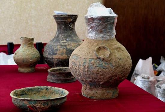 這是河南洛陽西漢空心磚券大墓的出土器物(2018年11月7日攝)。新華社記者 李安 攝