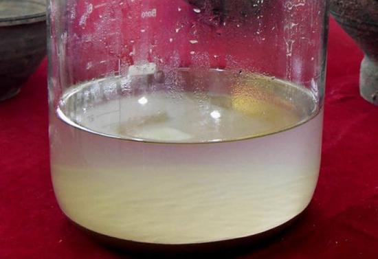 這是河南洛陽西漢空心磚券大墓出土的青銅壺內的液體(2018年11月7日攝)。新華社記者 李安 攝