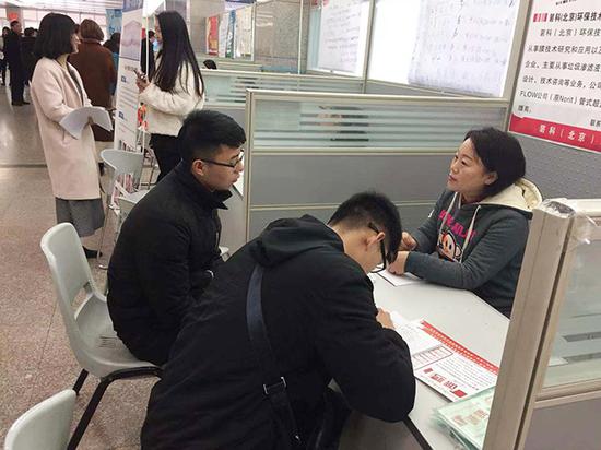 上午10點(diǎn),在一家環(huán)保公司招聘攤位前,畢業(yè)于西北民族大學(xué)電機(jī)專業(yè)的應(yīng)屆畢業(yè)生于雷,正在詢問(wèn)實(shí)習(xí)崗位的相關(guān)事宜,他對(duì)技術(shù)工程師比較感興趣,“如果晉升空間好的話,可以考慮入職。”于雷說(shuō)。