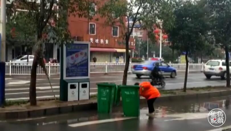 3月20號上午10點,昨夜天空下了一夜的雨,早上起來感覺空氣特別的清新,寬闊的馬路車水馬龍,忙碌的人們南來北往,記者走在項城青年路與西大街十字路口時看到一名穿著環衛衣服的老年環衛工人正在用路邊的積水用她的雙手清洗著2個垃圾桶,來往的人沒人注意這位環衛工人在干什么?可是記者瞬間就被她的舉動感化了!