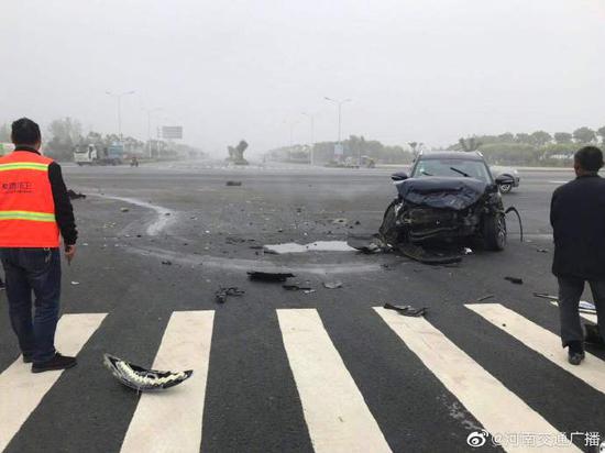 經開區錦瑞路鳳棲路北向南,發生兩輛私家車事故, 兩輛私家車都是車頭部位受損嚴重,好在車上人沒事,目前正在等待交警處理,請車友們注意避讓。(記者:夏青)