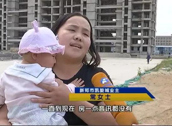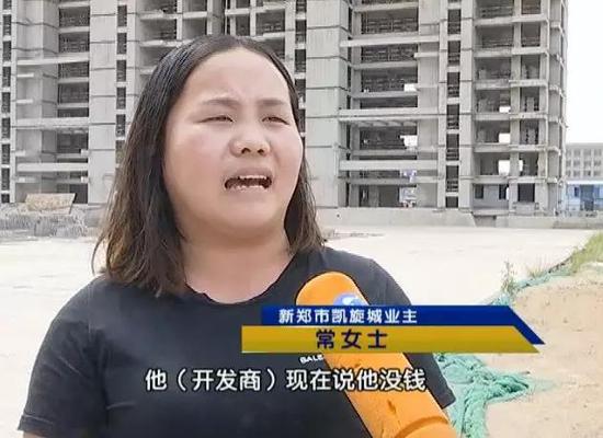 新鄭市凱旋城業主常女士:開發商現在說他沒錢,你一句你沒錢你就給俺打發了嗎?俺把錢投里面了,月月還著房貸,這個責任、后果誰來給俺承擔啊。