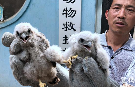 當(dāng)日下午,民警驅(qū)車將6只紅隼幼鳥送往鄭州市林業(yè)局野生動(dòng)物救護(hù)站。經(jīng)救助站董站長稱,經(jīng)檢查這6只雛鳥沒有受傷,這是剛孵化出來十幾天的雛鳥,正處于育雛期,再過二十來天才可以飛行。它們應(yīng)該連鳥巢一塊掉落的,由于長出了絨毛,掉落時(shí),它們會不由自主張開翅膀,起到了緩沖作用,加上又是跌落在草叢里,因此才沒有受傷。