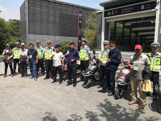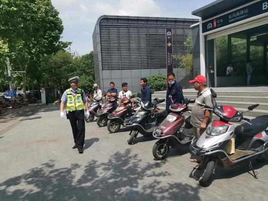 為全面維護鄭州市高鐵站地區的城市形象,進一步加強高鐵站地區交通秩序的綜合治理,2019年5月27日8時,六大隊五中隊對高鐵站周邊,尤其對新開的地鐵五號線出站口黑摩的違法載客現象進行集中整治。黑摩的為了逃避交警的處罰,經常在路口和執勤交警躲貓貓。針對這一情況,六大隊五中隊組織十二名警力開展專項治理行動,由副中隊長晁玉帶領。兩個小時,共發現8起黑摩的違法載客現象,這8名違法人員將被帶回六大隊進一步處理。(記者:晁兮)