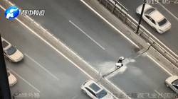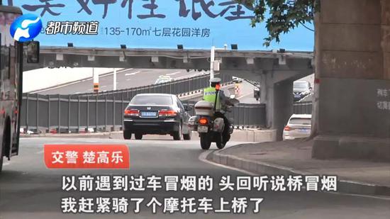 危機(jī)情況下,楚高樂來不及將警用摩托車行駛到前方再調(diào)頭回來,直接穿過高速行駛的車流,翻越中央的隔離護(hù)欄來到了起火點附近。
