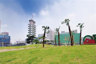 8月26日中午,記者發現二七廣場西側(原二七賓館舊址)圍擋已被拆除,一處面積約3000平方米的游園呈現在眼前,站在二七廣場西望,視野豁然開朗。