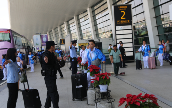 “報告值班1號,第十一屆全國少數(shù)民族傳統(tǒng)體育運動會代表團(tuán),抵離鄭州機(jī)場安保工作,圓滿結(jié)束!”9月18日晚,隨著某代表團(tuán)順利在鄭州機(jī)場登機(jī)返程,河南省公安廳機(jī)場公安局全體民警輔警通過對講機(jī)傳來了這個充滿喜悅感與成就感的消息。