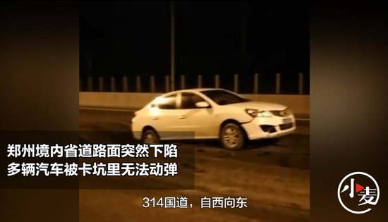 原標題:鄭州境內S314線沿黃快速通道路面下陷,汽車被卡坑里無法動彈