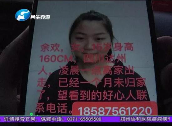 原標題:四川母親千里求助:16歲女兒離家出走 疑似在鄭州出現