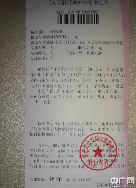 原標題:鄭州:行人違反交通規則 當場收獲“行人罰單”