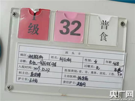 一氧化碳中毒患者病床床頭卡