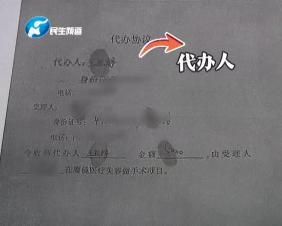 從康女士手中的代辦協議上,記者看到有一個人替小雨辦理了整形貸款。而在手術過后,小雨就遭受到了對方連番威脅。