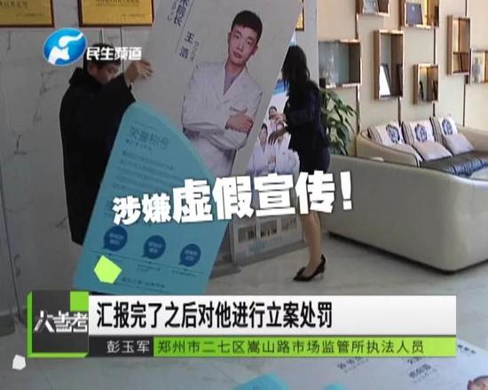 鄭州市二七區嵩山路市場監管所工作人員現場核查醫療人員的資質,發現對方涉嫌虛假宣傳,當場進行了拆除,并將進行立案處罰。