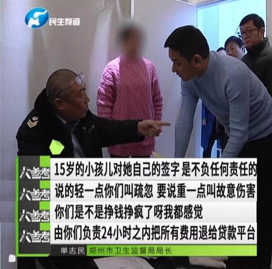 魔鏡醫療美容的瘋狂行為,讓執法人員都感到憤怒!鄭州市衛生監督局局長單志民當場怒斥魔鏡醫療美容機構的相關負責人:“你們是不是賺錢賺瘋了!”責令對方24小時之內負責將所有費用退給貸款平臺。