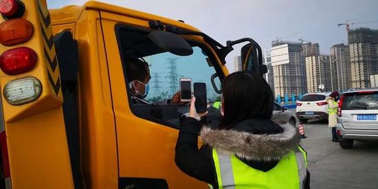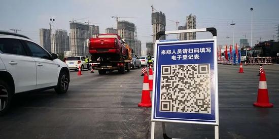 車輛駛出高速后進入防疫服務站,需配合防疫人員進行測溫,用手機掃碼填寫《來鄭人員健康登記表》后進入市區。