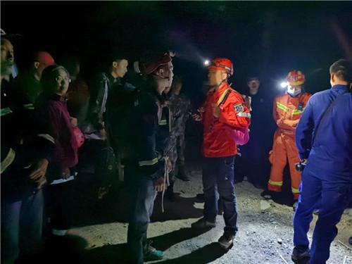 此時,山間小雨從天而降。救援人員冒雨前行,山間道路坡陡路滑,救援人員不時跌倒;路邊荊棘橫生,救援人員臉龐不時劃破,彎腰前行;救援一路,大家衣服全部濕透、鞋子灌滿了雨水。。。。。。。被困群眾手機電量已經消耗殆盡,隨時可能無法聯系,處境越發危險,加上焦急等待的家屬,使得救援人員的心里像壓了塊巨石。等待搜救組的是距離目標定位的二十余里山路,搜救仍然在雨夜中繼續。