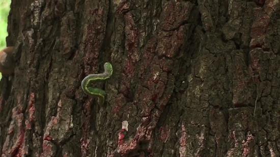 據附近小區一名打工者稱,這種蟲子他在鄉下老家也見過,叫槐尺蛾,由于會吐絲下垂,也被人稱為“吊死鬼”。這種蟲子好像特別喜歡吃槐樹葉,樹上的蟲害嚴重時,有時整棵樹的葉子都能被密密麻麻的蟲子吃光。目前這些都是幼蟲,每年的五月份是蟲害高峰期,需要及時打藥。