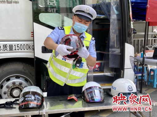 鄭州交警三大隊車站一中隊中隊長王楊在市場上隨機購買了八頂頭盔,同時使用兩種質量高的警用頭盔做對比實驗,向過往群眾介紹頭盔類別及防護級別。通過簡單的對比,發現僅是肉眼觀察就可以篩選淘汰大部分不合格頭盔。目前市場上售賣的頭盔主要普通頭盔及摩托車乘員頭盔。市場上價格30-80元的頭盔在緩沖層厚薄程度、護目鏡透光率及硬度、襯墊的面積大小及舒適度等方面均有差別。安全頭盔是經過國家強制認證的,也就是通常說的3C認證。購買頭盔時一定要檢查頭盔的合格證,要認清是否通過強制性國家標準《摩托車乘員頭盔》(GB 811-2010)規定的認證檢測,查看是否通過CCC認證。