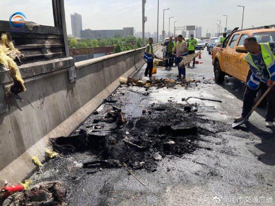 6月4日早上7:30左右,鄭州市區隴海高架東向西通泰路正上方,有一輛金杯面包車自燃,目前事故處理完畢,事故車輛已經被拖走,現場恢復了正常通行。駕駛員馬先生說,7點半左右他行駛到事發路段時,其他車友提醒他,車著火了。馬先生靠邊停車發現車輛前部底盤位置冒黑煙,他用自帶的滅火器,還有過路車友的滅火器,嘗試滅火失敗。消防車趕到后,將火撲滅。(大象新聞·河南交通廣播記者 楊光)