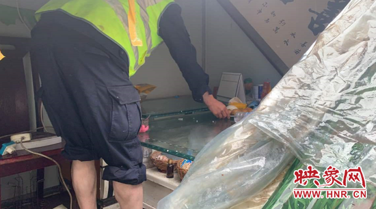 映象網訊(記者 邱延波 文/圖)6月16日,鄭州再次降雨,這場雨有點大,導致不少地方積水。鄭州市金水區楊金路巡防中隊在對轄區的積水點和易發生危險的地方進行檢查時,發現一家居民的簡易房因下雨而塌了。