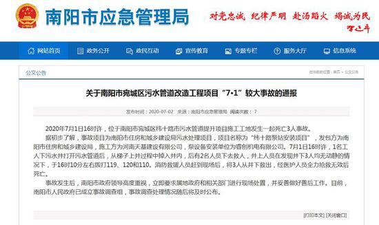 7月2日,記者從南陽市應急管理局與南陽市住建局獲悉,該事故造成3人死亡屬實,事故原因正在調查中。
