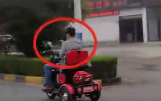 一男子一手扶著電動車的車把一手拿著手機,邊看邊騎電動三輪車在道路上行駛一里地,被途經(jīng)的新密交警叫停。