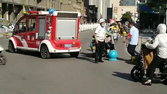 由于男子所處樓頂靠近街頭,一時間引起許多路人注意,為避免樓下通道聚集更多路人,附近秦嶺路巡防員也聞訊趕來疏散群眾和維護秩序。