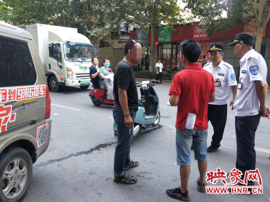 9月3日下午15時(shí)30分許,鄭州市金水區(qū)經(jīng)八路巡防隊(duì)員馬保民、張衛(wèi)國(guó)等人巡邏到經(jīng)八路與緯三路口向北20米時(shí),看見路邊有一男一女兩人正在爭(zhēng)吵,路中間還停放著一輛電動(dòng)車。經(jīng)了解得知:女子騎電動(dòng)車由北向南正常行駛,男子則剛從一家商店買東西出來,推行電動(dòng)車逆行向北。由于路邊一輛貨拉拉面包車正在卸貨,導(dǎo)致雙方視線受阻,不慎撞上。