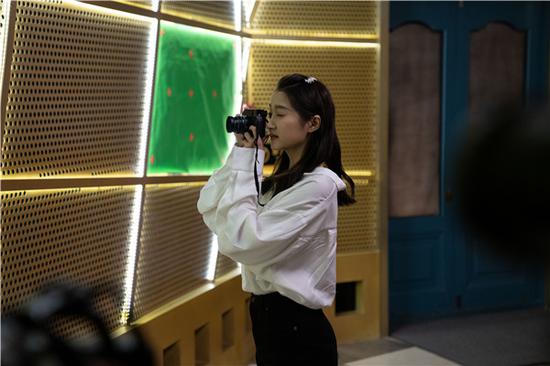 上午十點(diǎn),猛犸新聞?dòng)浾咴诂F(xiàn)場(chǎng)看到,關(guān)曉彤身著灰色休閑外套,頭戴黃色帽子低調(diào)現(xiàn)身,后換成白色襯衣、黑色長(zhǎng)褲,先后在“換裝空間”、“電影大道”、“時(shí)光匣子”、“群芳舞院”、“電影工坊”拍攝。