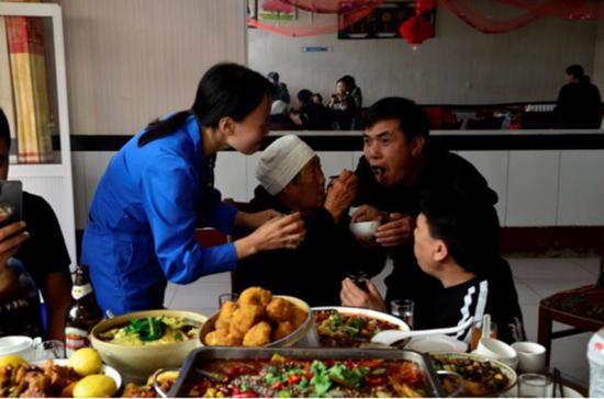 當(dāng)天中午,30年后與母親的第一頓團(tuán)圓飯,羅家兄弟逐個(gè)向母親敬酒。無(wú)論哪個(gè)兒子到面前,郭成芬老人都把自己碗里的肉夾一塊給孩子們。在她心中,好吃的留給孩子們,一如當(dāng)年。