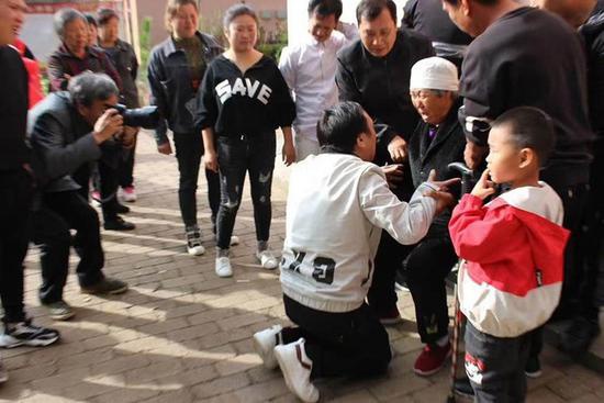 30年不見,母親老了很多,兒子們也都是中年人了,郭成芬老人只是哭,她已分不清面前跪著的分別是哪個(gè)兒子了。圍觀的村民見此場(chǎng)景,無(wú)不落淚。
