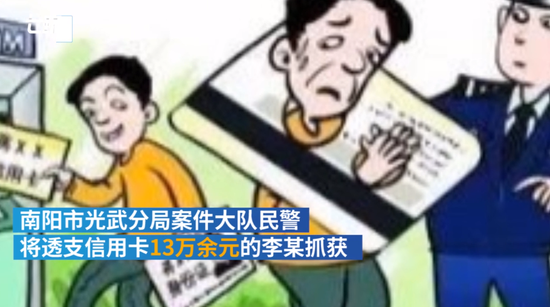 近日,河南南陽。女子李某的信用卡透支13余萬,她稱信用卡是姐夫趙某在使用,銀行報警后趙某被抓獲。警方介紹,趙某使用信用卡的目的是將錢套出用于放貸。案件在審理中。