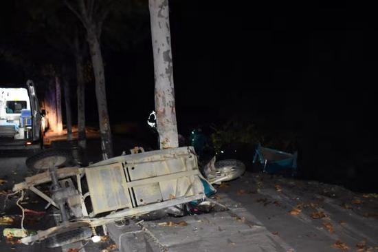 尋聲望去,借著車燈,張先生看見一輛電三輪,被撞翻到路邊已經散了架,而肇事的白色小貨車加速逃離現場,張先生見狀趕緊讓家人撥打110報警,并駕車追趕肇事車輛。