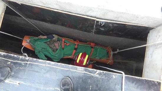指揮員立即下達救援命令,一邊安排人員根據現場環境架設救援陣地,一邊安排經驗豐富的搶險班班長,在規范穿著三類安全腰帶,雙繩連接后端設置好固定點以后,攜帶多功能擔架從平臺邊沿位置滑至底部。在確定被困人員受傷情況后,隨即鋪設好功能擔架,在隊友的配合下,救援人員輕輕將被困人員放置于多功能擔架上并固定牢固,僅用10分鐘就成功將被困人員救出并轉移到安全位置,移交給現場120救護人員進行救治。