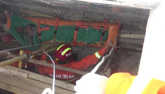 到達現場后,救援人員發現該男子平躺于建筑底部,指揮員在高處呼喊數聲后,墜落人員才有微弱回應,指揮員判斷被困人員應該處于半昏迷狀態,情況萬分危急。且由于底部空間狹窄,雜物甚多,鋼管橫于半空中,無法直接起吊設備,對救援工作帶來了極大不便。