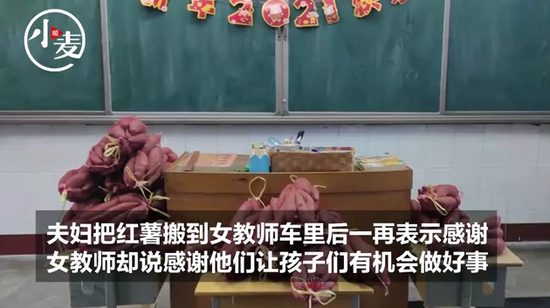 今早,參與愛心接力的孩子們都拿到女教師帶到班里的一袋袋愛心紅薯,更是一種暖心祝福。