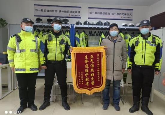 “謝謝,謝謝,太謝謝了!”1月17日下午14時20分,姚先生拿著一副寫有“正氣浩然好交警 生命通道護航者”的錦旗來到鄭州市公安局交警六大隊,親手交給鐵騎隊員們,并一口氣說了三聲“謝謝”。