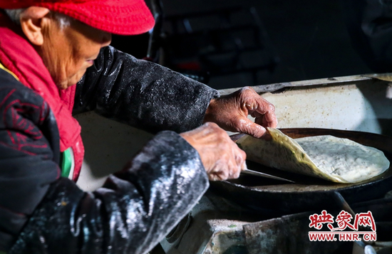 映象網訊(記者 段晉哲 文/圖)最近,鄭州街頭一位96歲高齡的老奶奶,獨自一人凌晨賣菜饃火遍網絡。深夜不少慕名而來的食客將街頭的菜饃攤團團圍住,品嘗、拍照、聊天熱鬧非凡。夜里一點左右,兩位食客專門從濟南開車趕來,特意品嘗老奶奶做的菜饃。
