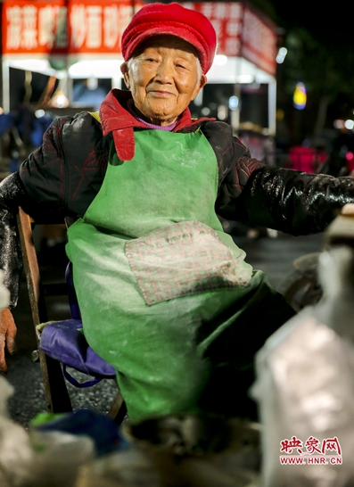 老奶奶名叫張玉珍,河南周口人,如今96歲高齡。老奶奶每晚11點出攤至,第二天早上5點收攤。每天早上去菜市場買菜,下午回去睡覺休息。傍晚時分做好出攤前的準備,除了下雨和下雪天氣之外,一般都會在11點左右出攤,堅持了30多年。6元一個的菜饃分量十足,獨特的配料讓人回味無窮。至于為什么賣這么實惠也不漲價,老奶奶說:“6塊錢一個,他們掙點錢也不容易”。