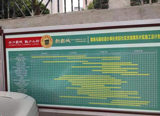 可從張貼的“隴海馬路街道辦事處老舊社區(qū)改造隴東片區(qū)施工總計劃”進(jìn)度圖標(biāo)上查看得知。整個隴東片區(qū)改造計劃用時四個月全部完成,即是從2020年9月1日開始,到2020年12月31日,要全部改造完成。可現(xiàn)實卻是截止2021年4月11日,隴東小區(qū)(隴東片區(qū)的一部分)改造進(jìn)展極其緩慢,大部分改造項目沒有進(jìn)行,而逾期已經(jīng)三個多月。