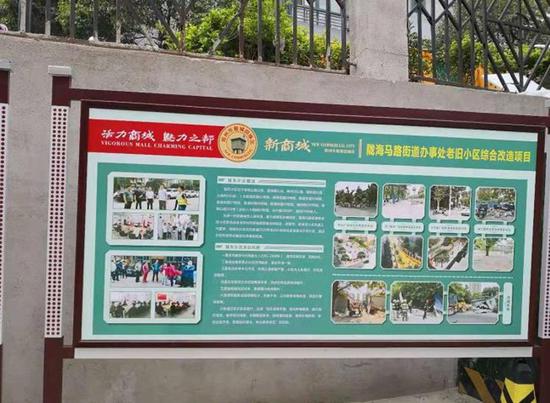居民所投訴的隴東小區(qū)位于隴海東路與紫荊山路交叉口東北角附近。從南門內(nèi)側(cè)公示的施工信息可以了解到,該小區(qū)占地面積約9公頃,此次改造被作為隴東片區(qū)的示范小區(qū)。